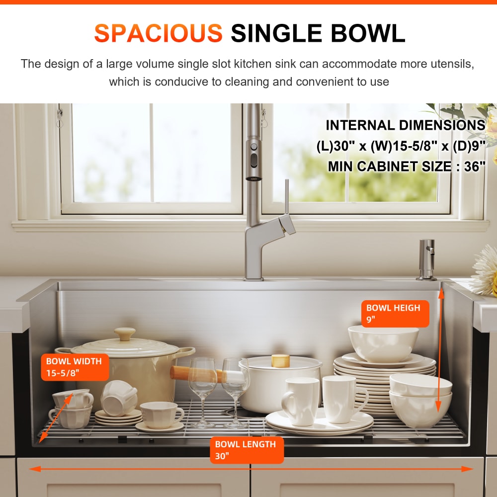 EASY CLEANING & SPACIOUS DEEP BOWL: X-shaped water line and slight slope around the drainage pipe can achieve complete draninage, R10 round corner provides a stylish and modern appearance, while making cleaning easy. A depth of 9 inches is the depth for soaking, scrubbing or cleaning large flat bottomed pots and pans
