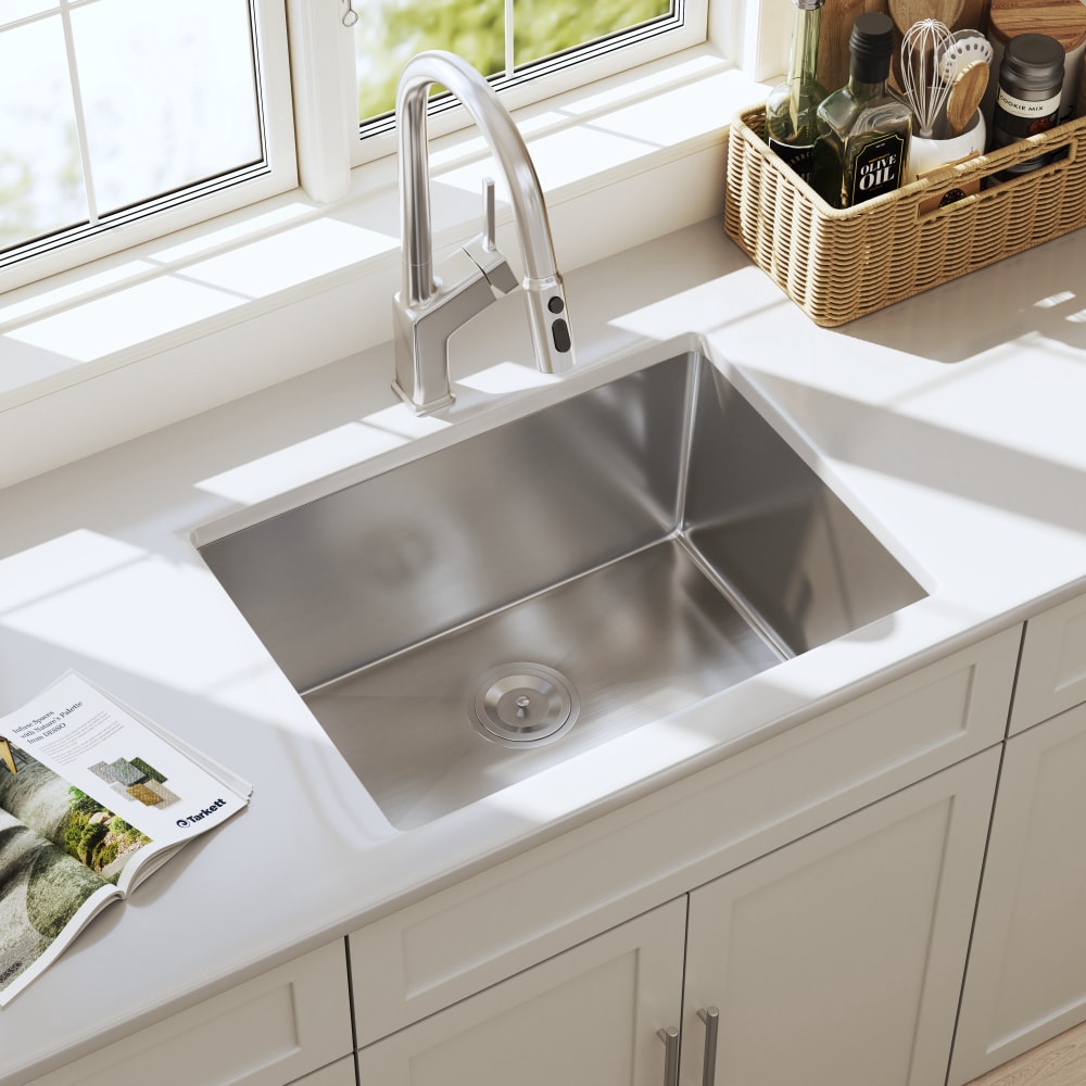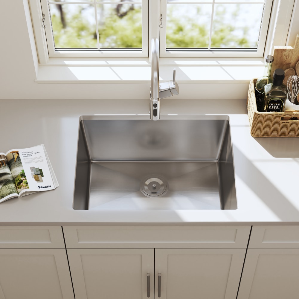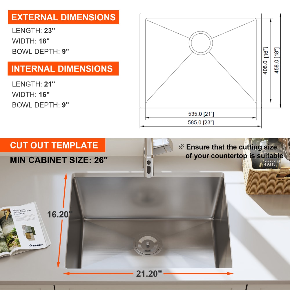 16 GAUGE 304 STAINLESS STEEL: Blenzia 23 inch workstation undermount sink is made of 16 gauge 304 stainless steel, which is more highly durable and rust resistant, its commercial-grade brushed surface is scratch-resistant and easy to clean