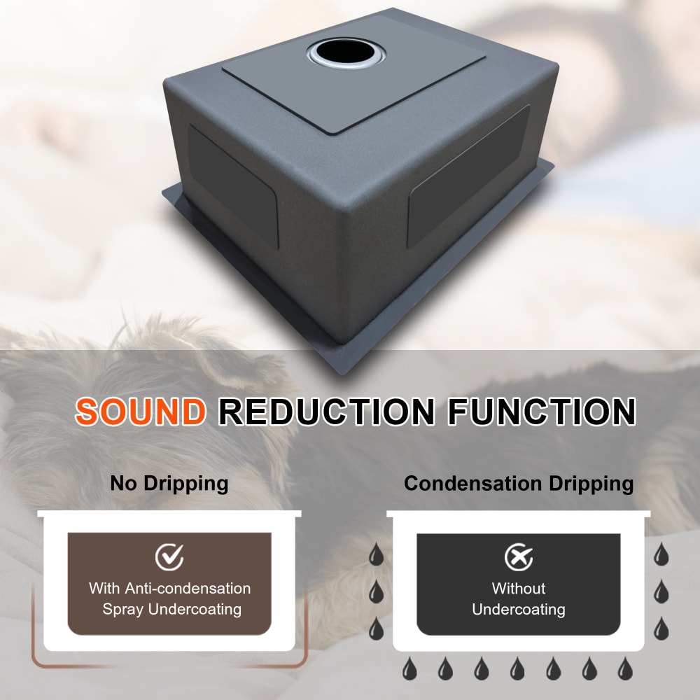 SOUNDPROOF & COATING: Our 23 inch base style kitchen sink features a heavy-duty soundproof base coating and an ultra thick soundproof pad, which can significantly reduce noise during use. In addition the anti condensation coating effectively isolates condensation water, protects your cabinet from damage, and provides excellent noise reduction effect