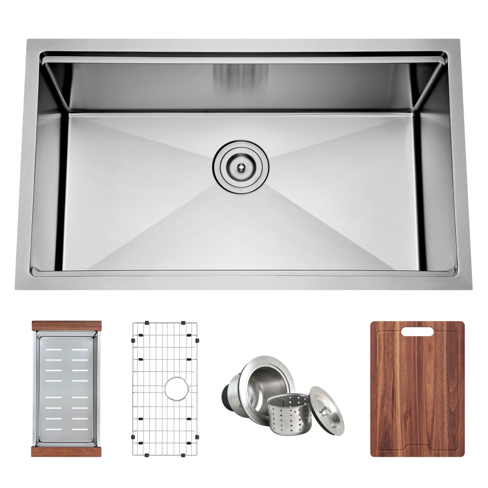 ACCESSORIES INCLUDED: Cutting Board x1 / Colander x1 / Bottom Grid x1 / Basket Strainer x1 / Install Accessories & Template x1 / Shipped to assist your kitchen work, providing a one-stop convenient accessory matching service