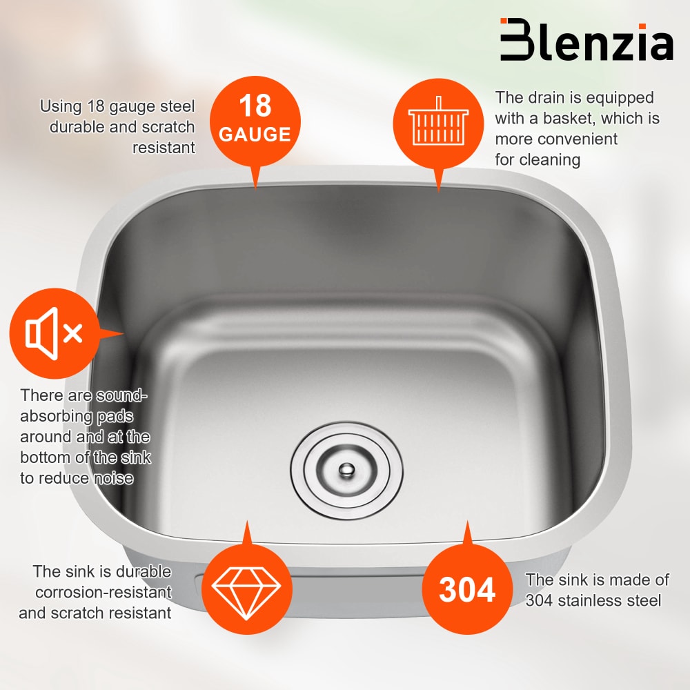 Blenzia 14 Inch Undermount Kitchen Sink 18 Gauge Stainless Steel Bar Perp Sink RV Camper Wet Bar Outdoor Laundry Utility Single Bowl Small Sinks 14" x 14" x 6"