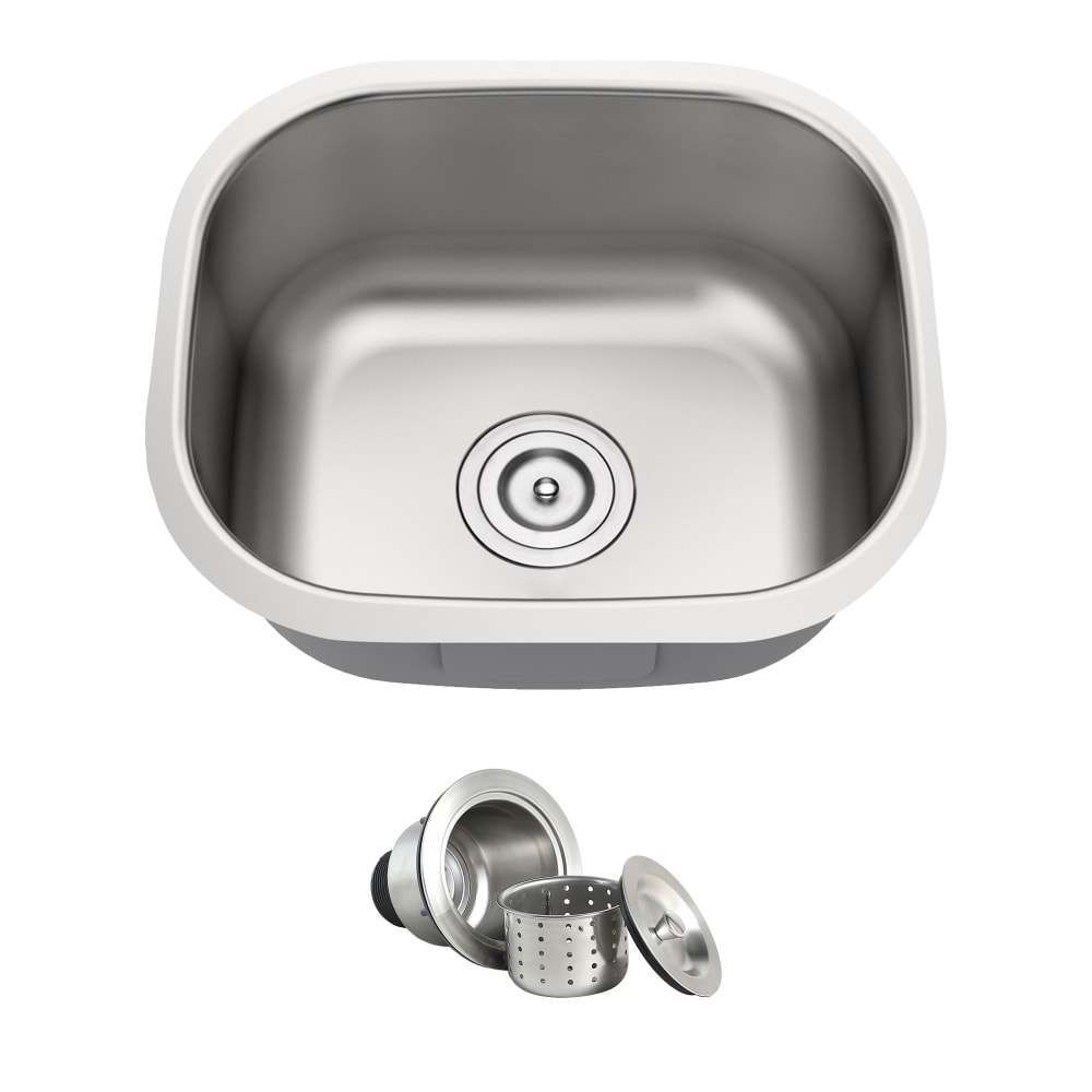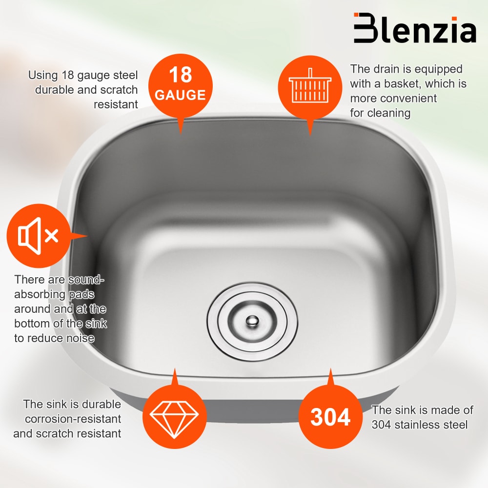 Blenzia 15 Inch Undermount Kitchen Sink Stainless Steel 18 Gauge Bar Perp RV Camper Wet Bar Outdoor Single Bowl Sink with Strainer 15" x 13" x 8"