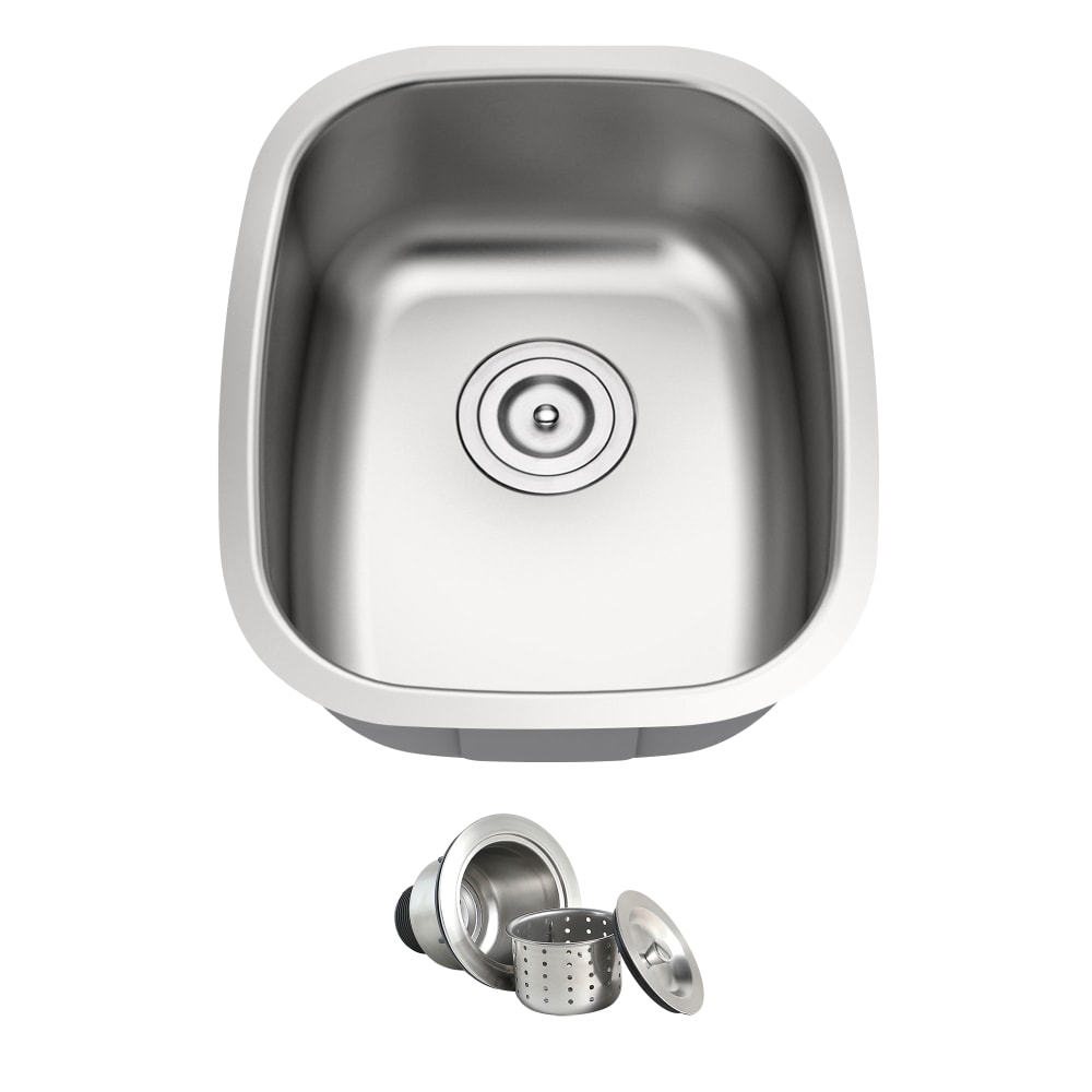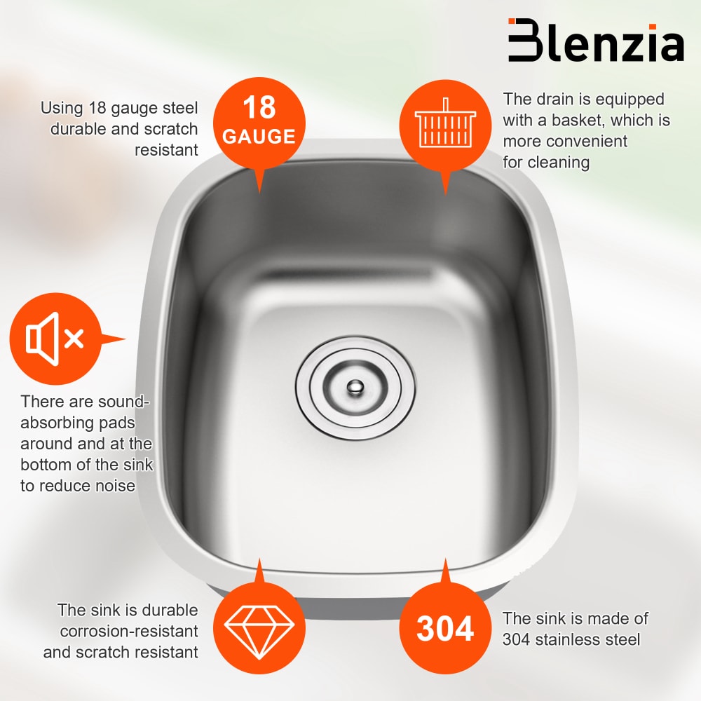 Blenzia 15 Inch Undermount Kitchen Sink 18 Gauge Stainless Steel RV Camper Wet Bar Outdoor Single Bowl Sink Bar Perp Sink with Strainer 15" x 19" x 8"