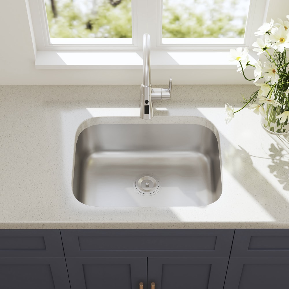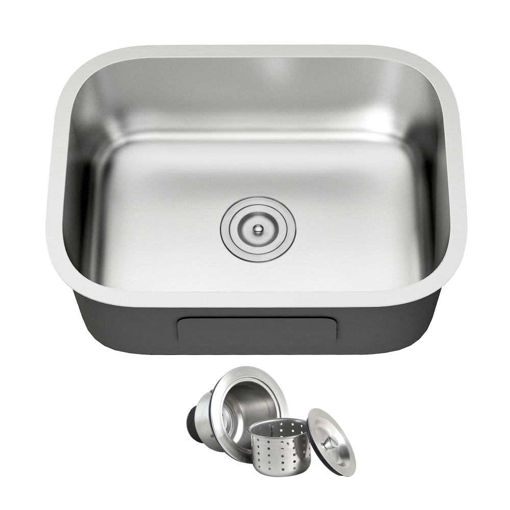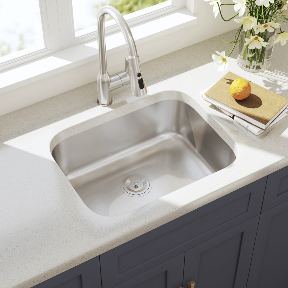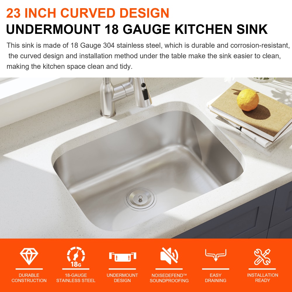 Blenzia 23 Inch Undermount Kitchen Sink 304 Stainless Steel 18 Gauge Brushed Nickel Curved Single Bowl Durable Sinks with Strainer 23" x 18" x 9"