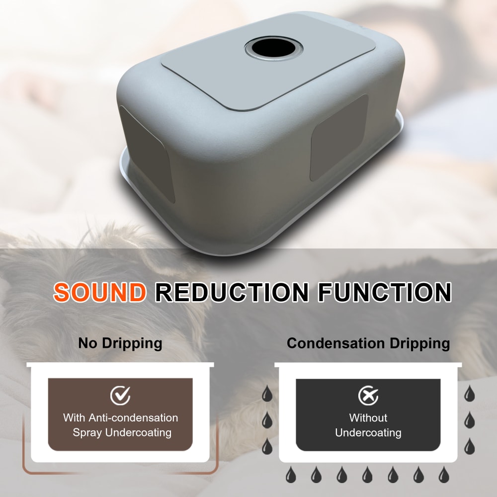 QUIET & ANTI-CONDENSATION: This upgraded sink has soundproofing pads at the bottom and around to reduce water flow noise. There is also an anti-condensation coating that can prevent condensation at the bottom of the sink due to temperature differences, protecting your cabinet