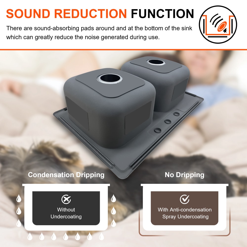 QUIET & ANTI-CONDENSATION: This upgraded sink has soundproofing pads at the bottom and around to reduce water flow noise. There is also an anti-condensation coating that can prevent condensation at the bottom of the sink due to temperature differences, protecting your cabinet