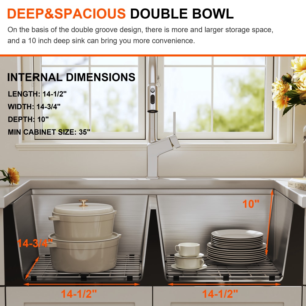 EASY CLEANING & SPACIOUS DEEP BOWL: X-shaped water line and slight slope around the drainage pipe can achieve complete draninage, R10 round corner provides a stylish and modern appearance, while making cleaning easy. A depth of 10 inches is the depth for soaking, scrubbing or cleaning large flat bottomed pots and pans