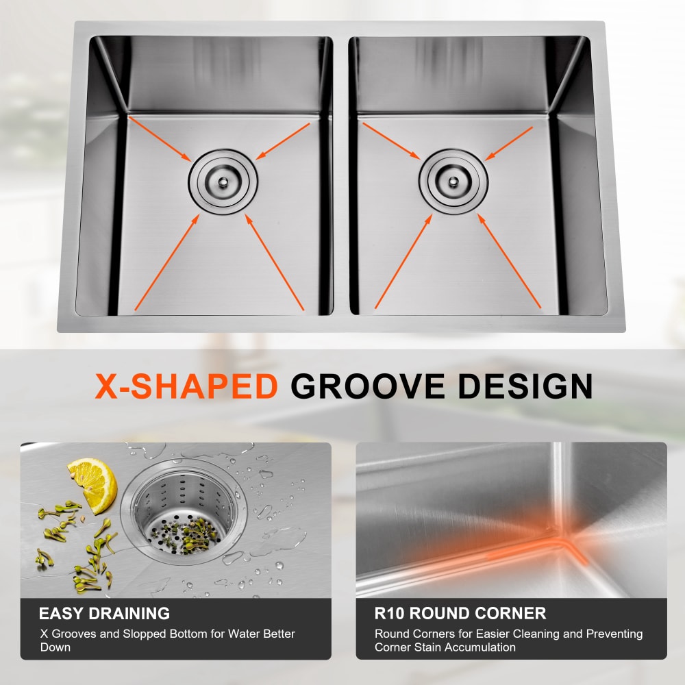 EASY CLEANING & SPACIOUS DEEP BOWL: X-shaped water line and slight slope around the drainage pipe can achieve complete draninage, R10 round corner provides a stylish and modern appearance, while making cleaning easy. A depth of 10 inches is the depth for soaking, scrubbing or cleaning large flat bottomed pots and pans