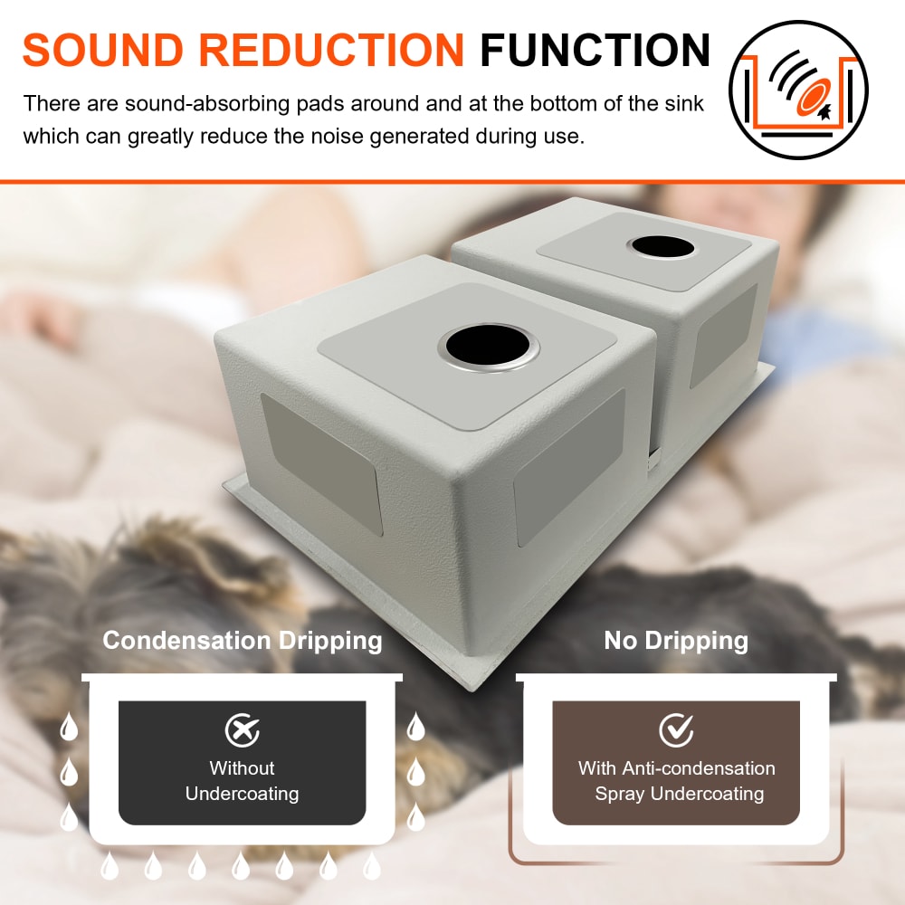 HIGH LEVEL MATERIAL: This sink is made of 16 gauge 304 stainless steel, which is durability, performance and aesthetics. R10 radius corner make easy cleaning, bottom flush grille to prevent dents and scratches for long-term use in busy kitchens, commodity grade satin surface, corrosion-resistant, rust proof and durable